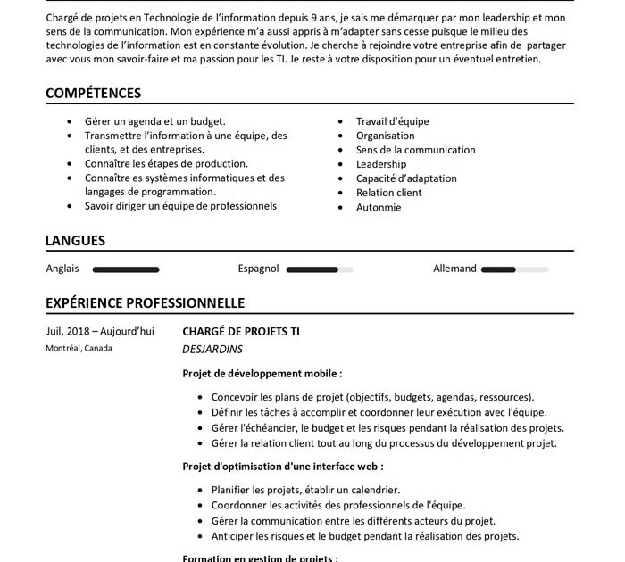 Exemple De Cv Canadien 2020. Modèle de cv canadien à télécharger gratuit et à remplir avec word. Ce modèle de cv rédiger par les conditions canadiennes